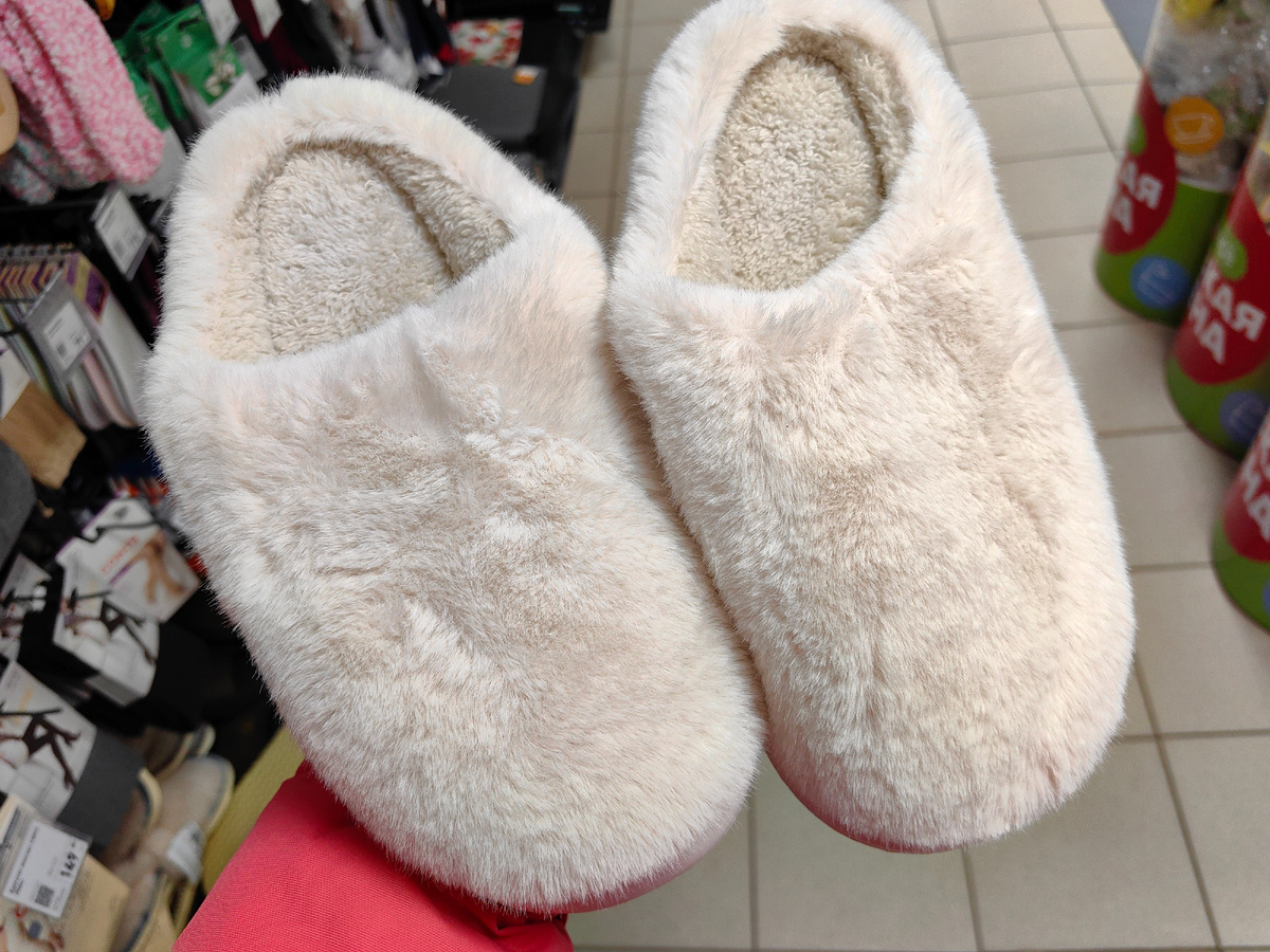 Надо же, в Фикс Прайс нашла мягкие, белоснежные тапочки. Снаружи густой пушистый мех, стелька и внутренняя часть тоже из меха, ворс короче. Обычно если и привозят подобные, то с мягкой войлочной подошвой. На это раз не так! Подошва гибкая, плотная, из эва. Для любой напольной поверхности, не должна скользить. Верх - искусственный мех. Размеры от 36 по 45. Честно говоря, я задумалась, тапочки явно женские, тогда почему такие размеры? Спросила у продавцов, ответили, что будут не только белые, в коробке много, пока что вынесли верхние, первые, что под руку попались. Во время приемки товара продавцы торопятся выставить все поскорее. Плюс еще покупателей много, начинается предновогодняя суета. К таким тапочкам еще вернусь, посмотрим, что еще появится. Снег привезли? :) Новинка такая же пушистая, как снежный ком. Соскучились по снегу. Так вот, новиночка - это такая свеча, да, и название Сноуфолл подходящее - снегопад. Кому снег пока еще не достался, можно на такие свечи-комочки посмотр