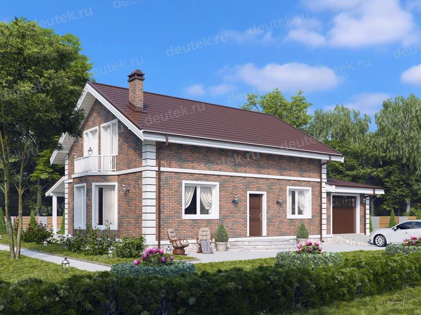 Кровля: металлочерепица Фасад: облицовочный кирпич 120 мм Стиль: европейский Двухэтажный дом площадью 213 м2 выполнен в европейском стиле. К его достоинствам стоит отнести: внешнюю эстетичность, грамотную планировку, наличие одноместного гаража. Дом удачно скомпонован с пристроенным гаражом, где также через разделительную перегородку размещена котельная. Фундаментом в данном проекте выступает монолитная ж/б плита, а кровлей для полумансардной