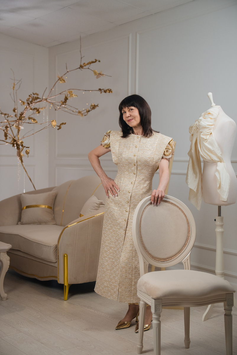 Когда смотришь на это платье, кажется, что его сделали в ателье высокой моды. Золото, объём, фактура, цветы — всё кричит о роскоши.
