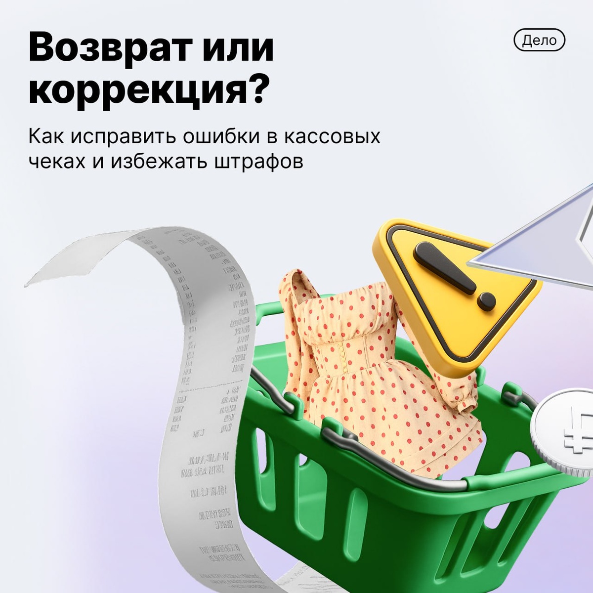 🧾 Ошибка в чеке — это не страшно, главное — вовремя ее исправить. Сегодня расскажем, какими способами это можно сделать Их два — возврат и чек коррекции. Каждый решает свои задачи, и важно понимать, когда и какой нужно использовать. 1️⃣ Пробиваем чек коррекции В этом случае чаще всего вы сами обнаруживаете ошибку, например, чек в 10 000 рублей вместо 1000. Сумму покупатель платит верную, но из-за неправильных цифр образуется недостача. Тут-то и настает время оформить чек коррекции. Когда: используется для исправления технических или бухгалтерских ошибок (неверной суммы, ставки налога, реквизитов и пр.) в уже совершенной операции. Вы просто исправляете недочет, но на ваши отношения с покупателем это никак не влияет, просто фискальные данные приводятся в соответствие с реальными расчетами. При этом новый скорректированный чек клиенту отправить все равно надо — таковы требования законодательства. 2️⃣ Оформляем возврат Здесь инициатором перемен выступает покупатель, который обнаруж