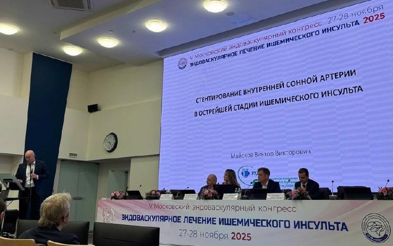 Современное лечение ишемического инсульта V Московский эндоваскулярный конгресс «Эндоваскулярное лечение ишемического инсульта» собрал больше 200 очных и больше 1000 онлайн-участников из городов России, Республики Беларусь, Республики Казахстана и Республики Таджикистан. Эндоваскулярный подход – современный ответ в деле лечения ишемического инсульта – на стыке двух медицинских направлений: сосудистой неврологии и эндоваскулярной хирургии. И в подтверждение этому с докладом перед научным сообществом выступил заведующий отделением РХМДиЛ Университетского клинического центра им. В.В. Виноградова (филиал) РУДН, к.м.н. Виктор Викторович Майсков. Тема «Стентирование внутренней сонной артерии в острейшей стадии ишемического инсульта» - это теоретическая реализация каждодневной работы с клиническими случаями на площадке нашей клиники по спасению жизней пациентов.