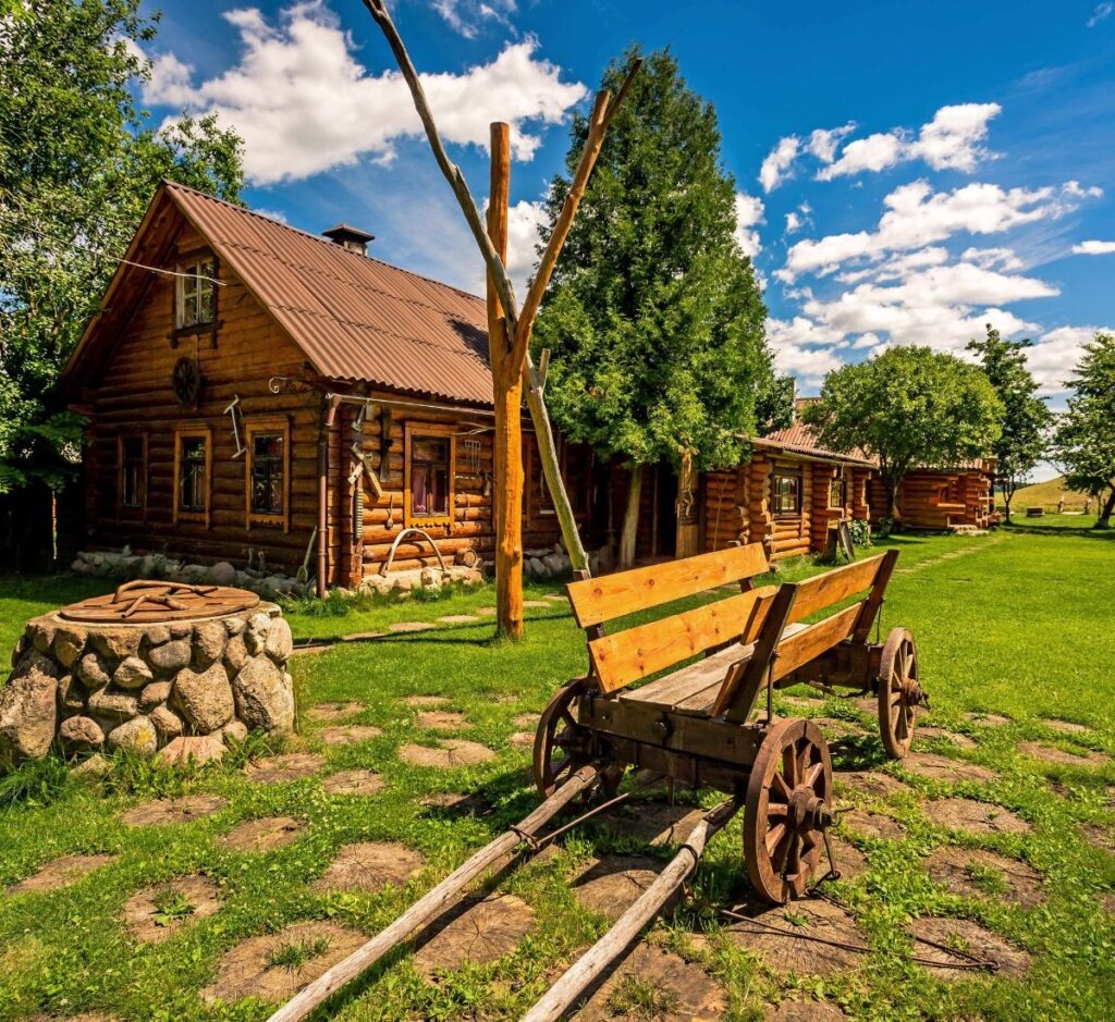 Усадьба находится недалеко от Минска, среди зелёных лугов и лесных тропинок. Деревянные домики с резными наличниками, просторный двор и печь, в которой готовят хлеб, создают ощущение настоящей деревенской жизни. Здесь нет городской суеты — только природа и душевное тепло.