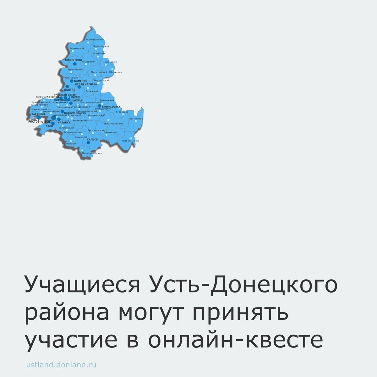 18 декабря состоится онлайн-квест «Геоинформационные технологии» среди школьников и участников проекта «Школьные центры космических услуг». Мероприятие пройдет в формате видео-конференц-связи. Команды будут выполнять практическое задание, по результатам которого необходимо будет составить на карте загаданное слово. Победитель будет определён по сумме набранных баллов с учётом правильности и быстроты выполнения задания. Для участия в квесте до 16 декабря требуется пройти регистрацию по ссылке: https://clck.ru/3QjNWC. Материалы для подготовки к прохождению квеста доступны на геопортале Ростовской области для зарегистрированных пользователей по ссылке: https://clck.ru/3FwWSt. Усть-Донецкий район. Подписаться в MAX. #УстьДонецкийрайон #ГИСРО #АдминистрацияУстьДонецкогорайона