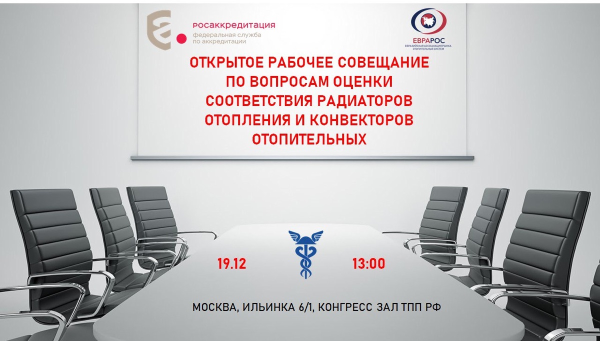 Уважаемые коллеги! Ассоциация ЕВРАРОС приглашает вас принять участие в открытом рабочем совещание по вопросам оценки соответствия радиаторов отопления и конвекторов отопительных. В совещании примут участие руководитель Федеральной службы по аккредитации Д.В. Вольвач и заместитель руководителя службы М.Б. Залазаев. На совещание приглашаются руководители аккредитованных органов по сертификации, специалисты испытательных лабораторий, производители и поставщики отопительных приборов. Будут обсуждены вопросы проведения измерений и испытаний на соответствие приборов требованиям, установленным в действующих стандартах, вопросы правильного оформления протоколов и сертификатов соответствия. Совещание пройдет в очном формате 19 декабря 2025 года в 13 часов в конгресс зале Торгово-промышленной палаты Российской Федерации по адресу: г. Москва, ул. Ильинка, дом 6/1. Начало регистрации 12:30. ❗️Для участия необходимо направить ФИО, название организации, должность участника и контактные данные на поч