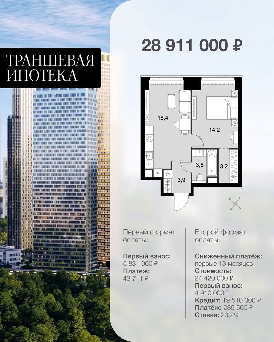 1к. квартира 43.5 м² Срок сдачи: 2 квартал 2028 Первый формат оплаты: Первый взнос: 5 831 000 ₽ Платёж: 43 711 ₽ Стоимость: 28 911 000 ₽ Второй формат оплаты Сниженный платёж на первые 13 месяцев Стоимость: 24 420 000 ₽ Первый взнос: 4 910 000 ₽ Кредит: 19 510 000 ₽ Платёж: 285 500 ₽ Ставка: 23,2% ❤️Отделка White Box ❤️Гардеробная ❤️Можно поставить большую кровать в спальне ❤️Ниша под стиральную машину ❤️Проходная кухня-гостиная ❤️Гибкая планировка ❤️Увеличенная ширина окна/окон ❤️Место для игры/занятия спортом ❤️Евроформат ❤️Ниша под шкаф ❤️Мастер-зона с гардеробной ❤️Линейная ❤️Увеличенная высота окна Пиши ❤️ @ipoteka_malkhasyan13