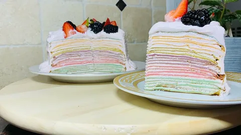 Забудьте на миг о тяжёлых бисквитах и сложных пропитках. Этот торт - гимн лёгкости, празднику, который начинается с самого простого и родного - с блинного теста. Это кулинарная магия, превращающая стопку разноцветных блинов в ослепительный, воздушный десерт, где каждый слой - это аккорд в сладкой симфонии вкуса и цвета. Ингредиенты для съедобной палитры: Акт творения: 1. Рождение радуги.