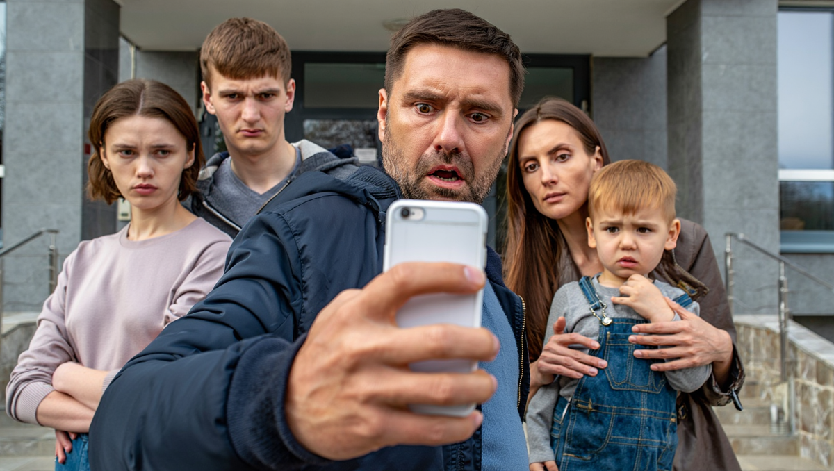 Он быстро натянул куртку и спустился во двор. Возле подъезда стояли женщина с ребёнком и молодой человек в костюме с папкой документов.