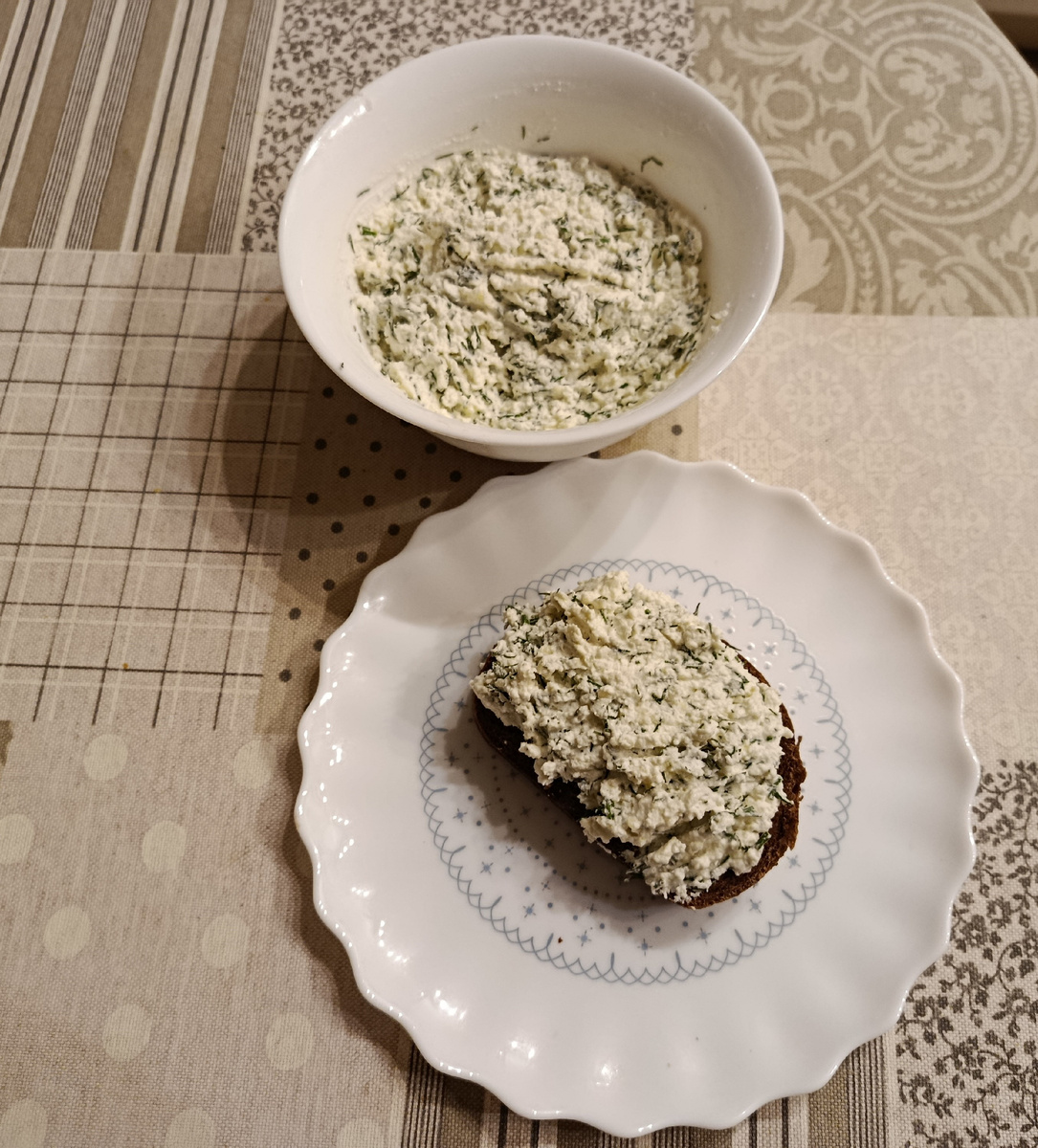 Когда обычные бутерброды с колбасой и сыром надоели и хочется что-нибудь новенького можно приготовить творожную намазку. Простой и быстрый рецепт , время приготовления 10 мин. Потребуется : творог (не зерненый) 5-9 % жирности - 100 г небольшой пучок укропа чеснок - 1-2 зубчика (можно и больше , дело вкуса) соль по вкусу ( 1/4 ч.ложки) майонез - 2-3 ст.ложки Творог разминаем вилкой или блендером до однородности . Укроп мелко режем, чеснок измельчаем прессом. Все смешиваем и заправляем майонезом. Намазка готова ! Можно сделать бутерброд со свежим хлебом , поджаренным тостом или сделать канапе . Канапе с творожной намазкой хорошо дополнить целыми оливками или кусочками свежего огурца. Приятного аппетита! Друзья! Ваш комментарий − лучшая поддержка и стимул для меня. Поставив палец вверх и оставив комментарий, Вы помогаете каналу развиваться. Спасибо!