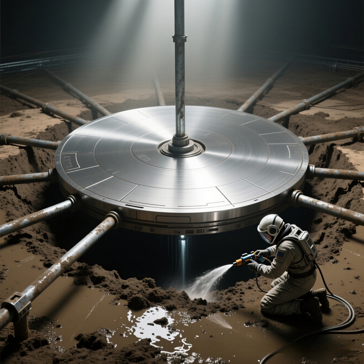 Тем временем на объекте продолжили обследование найденной конструкции. Попытались извлечь диск из грунта, но он не двигался, словно был намертво закреплён в бетонном основании. Самарин принял решение временно приостановить физическое вмешательство и сосредоточиться на документировании находки.