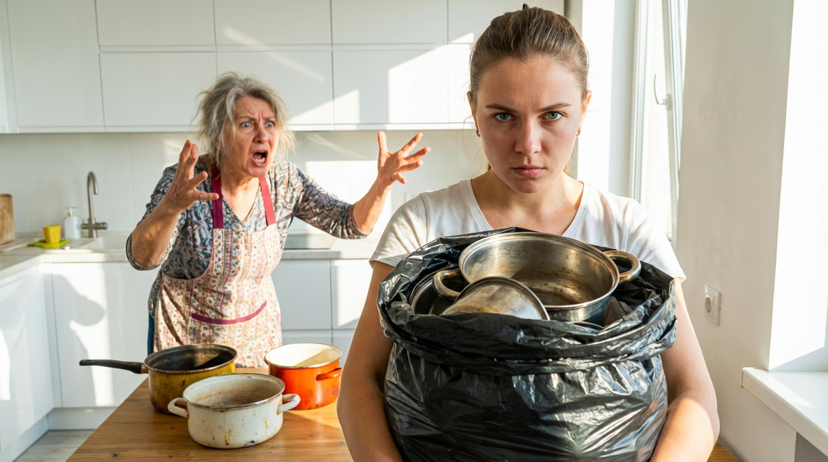 Не успела Марина опомниться, как свекровь начала переставлять ее вещи. Она действовала как ураган. Баночки с крупами сдвигались в угол, освобождая место для алюминиевых монстров. Красивые полотенца летели на подоконник, а на их место вешались застиранные тряпки, которые свекровь тоже прихватила с собой («Ватные, хорошо впитывают!»).