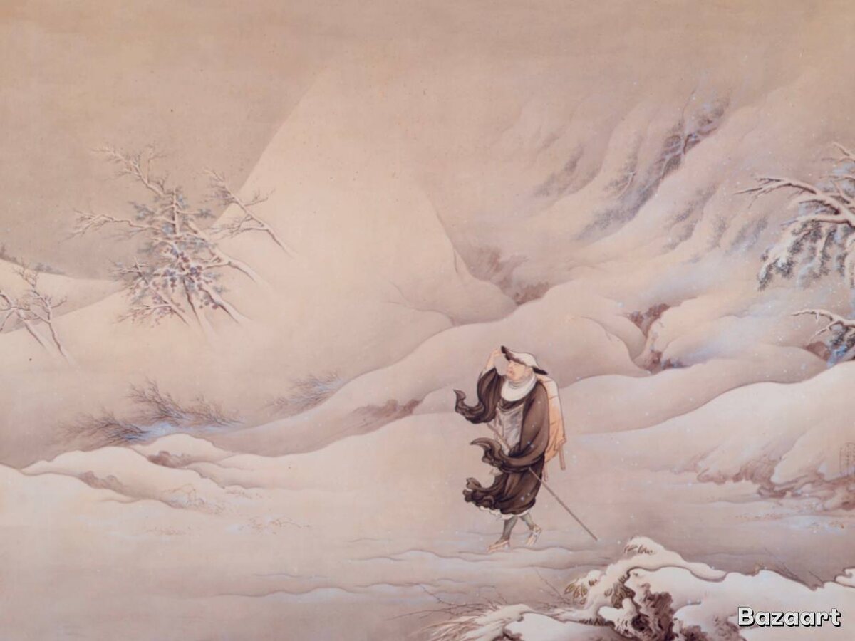 Хасимото Гахо (1835–1908) — один из основателей стиля нихонга (см. в комментариях) Герой картины — Ходзё Токиёри (1227–1263), правитель периода Камакура. Легенда гласит, что он инкогнито путешествовал по стране, чтобы понять жизнь простых людей. В японской культуре подобные истории всегда были не просто хроникой, а намёком на идеального правителя — мудрого, внимательного, человеческого. «Тайное путешествие Ходзё Токиёри», 1860-е