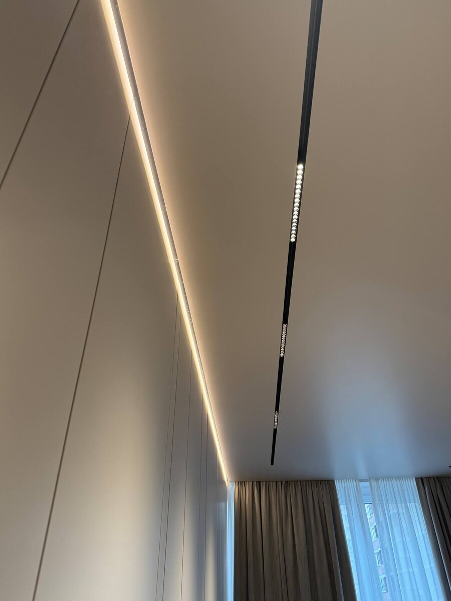 Что обязательно должно быть у современного потолка? 1️⃣ Парящий и теневой профиль Создаёт лёгкий визуальный эффект, будто потолок парит в воздухе. Тонкая тень по периметру придаёт интерьеру глубину и стиль, а сам потолок смотрится современно и невесомо. 2️⃣ Трековая система Это гибкое решение для освещения: можно легко менять количество светильников, их расположение и направление света. Такой потолок подстраивается под ваши задачи — от уютного вечера до яркой вечеринки. 3️⃣ Скрытый карниз с подсветкой Шторы «выезжают» прямо из потолка, без лишних деталей. Подсветка добавляет мягкое рассеянное сияние, которое делает комнату более уютной и визуально просторной. Современный потолок — это не просто отделка, а инструмент для создания атмосферы и акцентов в интерьере 🛋️✨ Делаем ремонт под ключ в Краснодаре. Бесплатная консультация и выезд на замеры👇🏻 📱 +7 (988) 240-41-00 YouTube 🎥 VK Video 📱 Rutube