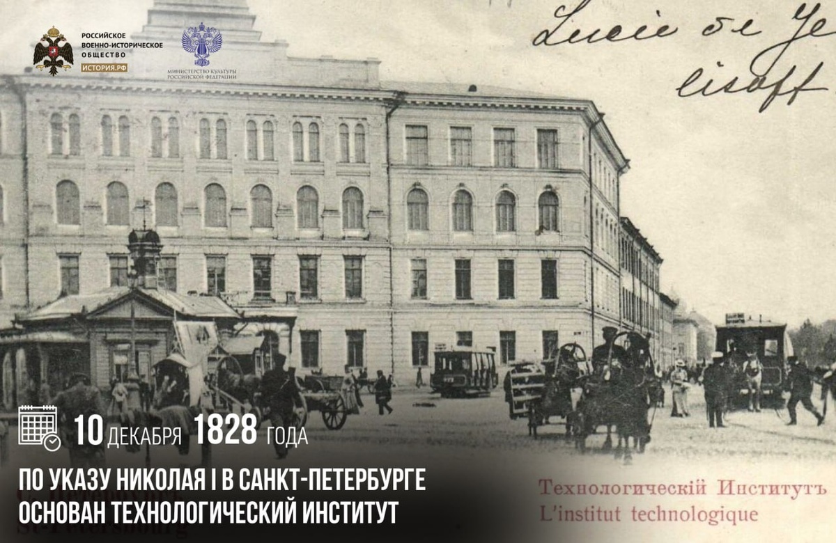 10 декабря 1828 года по указу Николая I в Санкт-Петербурге основан Технологический институт