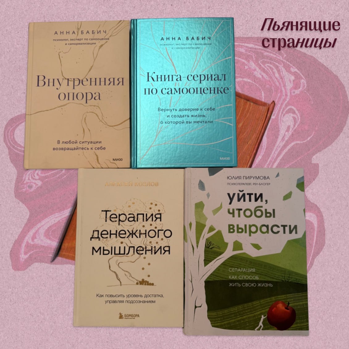 Сегодня хочу поделиться очень важными для меня книгами по психологии — теми, которые реально помогли в процессе моего взросления и формирования опоры на себя. 💡Самое главное в этих книгах — прикладной формат. Я не люблю «гениальные» труды, где на 200 страниц одна здравая мысль и море философии ради философии. Эти книги — совсем другие. Каждая из них — это последовательный путь: нашёл свою проблему → сделал упражнение → увидел, как что-то в тебе изменилось. ❗️Рекомендую от души. 💡Анна Бабич — «Внутренняя опора» Очень ясная, короткая и по делу. Про самоценность, уважительное отношение к себе, честную любовь к себе без розовых очков и про тот самый внутренний стержень, который не ломается при первом же «ты не так живёшь». Структура простая: объяснение — упражнение — осмысление. Хорошая книга, если вы чувствуете, что вас всё время «качает» от чужого мнения, ожиданий и критики. 💡Анна Бабич — «Книга-сериал по самооценке» Здесь не теория, а история одного конкретного персонажа. Он вс