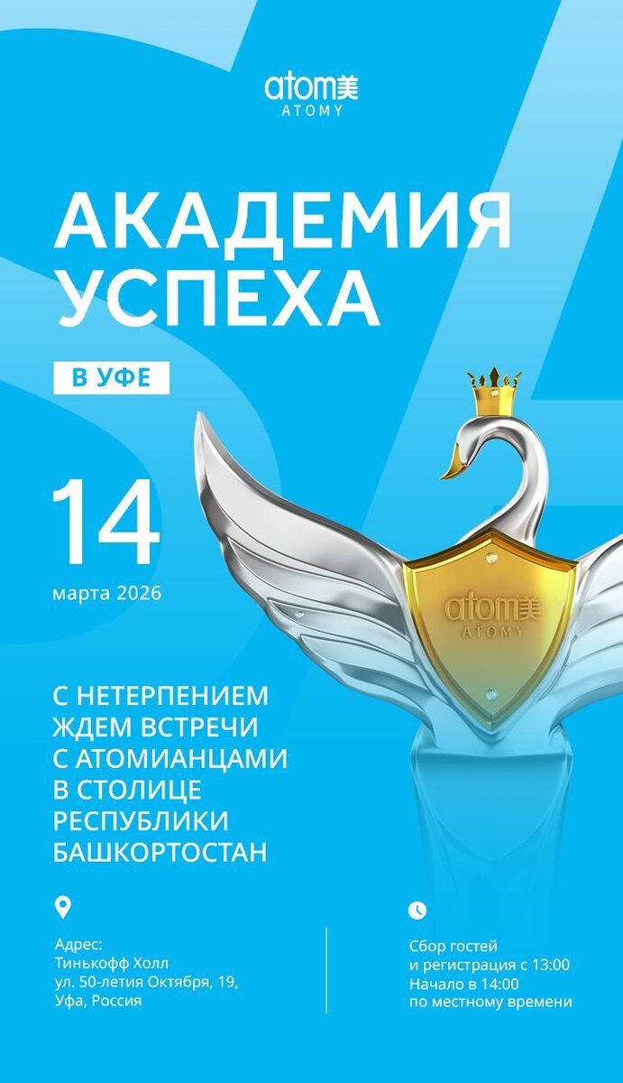 🦢 Академия Успеха в Уфе Кто готов, покупаем билеты Когда: 14 марта 2026 года Где: Тинькофф Холл Адрес: ул. 50-летия Октября, 19, Уфа, Россия Купить билет: ЗДЕСЬ