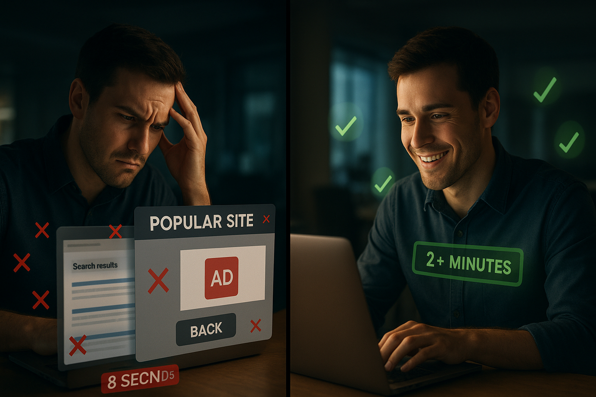 1. Отказы и время на сайте: почему люди уходят через 30 секунд