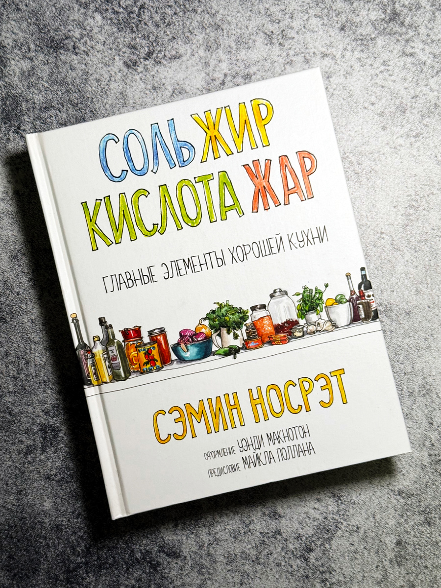 Уже давно собирался рассказать о по-настоящему вдохновляющей книге «Соль, жир, кислота, жар» Сэмин Носрат. Эта книга не про топ-100 лучших рецептов (хотя рецепты в ней огонь 🔥), а про философию о четырех фундаментах любого вкусного блюда — соли, жире, кислоте, жаре. Начну с предисловия. Меня особенно впечатлил путь автора к этой книге. Сэмин — человек без профильного кулинарного образования, даже не задумывавшаяся о карьере повара. Переломным моментом стал ужин в легендарном ресторане Chez Panisse — одном из основоположников концепции "от фермы к столу", в котором меню менялось каждый день в зависимости от того, что привезли фермеры. Ужин настолько вдохновил Сэмин, что она устроилась туда... уборщицей. Но! Благодаря упорству она сначала доросла до стажера, а через время и до шеф-повара в этом же ресторане. Нестандартная история, идеально подходящая такой нестандартной книге 😁 Кстати, именно в процессе работы поваром Сэмин открыла для себя ту самую теорию: соль, жир, кислота и жар —