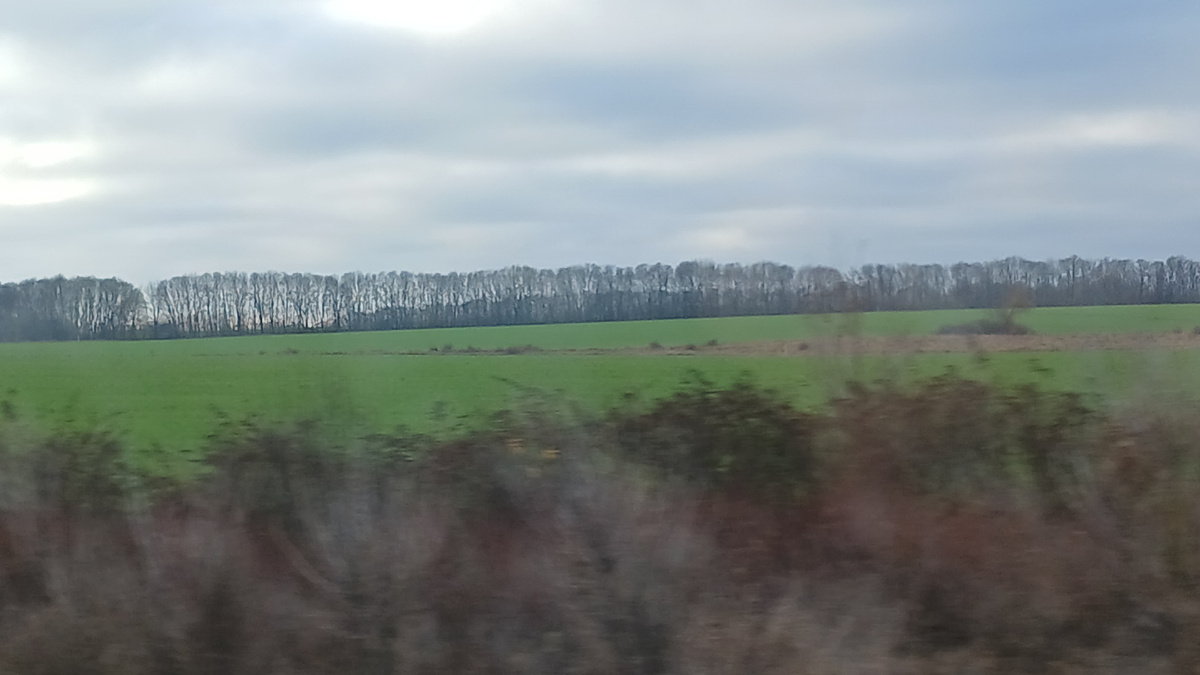 Поразила сочно-зеленая трава на полях. В декабре такое видеть очень непривычно. Ну точно лето, если бы не голые деревья.