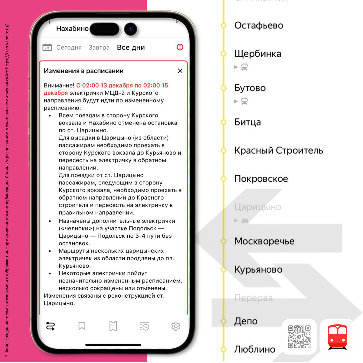 Π‘ 02:00 13 Π΄Π΅ΠΊΠ°Π±ΡΡ ΠΏΠΎ 02:00 15 Π΄Π΅ΠΊΠ°Π±ΡΡ ΡΠ»Π΅ΠΊΡΡΠΈΡΠΊΠΈ ΠΠ¦Π-2 ΠΈ ΠΡΡΡΠΊΠΎΠ³ΠΎ Π½Π°ΠΏΡΠ°Π²Π»Π΅Π½ΠΈΡ Π±ΡΠ΄ΡΡ ΠΈΠ΄ΡΠΈ ΠΏΠΎ ΠΈΠ·ΠΌΠ΅Π½Π΅Π½Π½ΠΎΠΌΡ ΡΠ°ΡΠΏΠΈΡΠ°Π½ΠΈΡ: β‘οΈ ΠΡΠ΅ΠΌ ΠΏΠΎΠ΅Π·Π΄Π°ΠΌ Π² ΡΡΠΎΡΠΎΠ½Ρ ΠΡΡΡΠΊΠΎΠ³ΠΎ Π²ΠΎΠΊΠ·Π°Π»Π° ΠΈ ΠΠ°Ρ