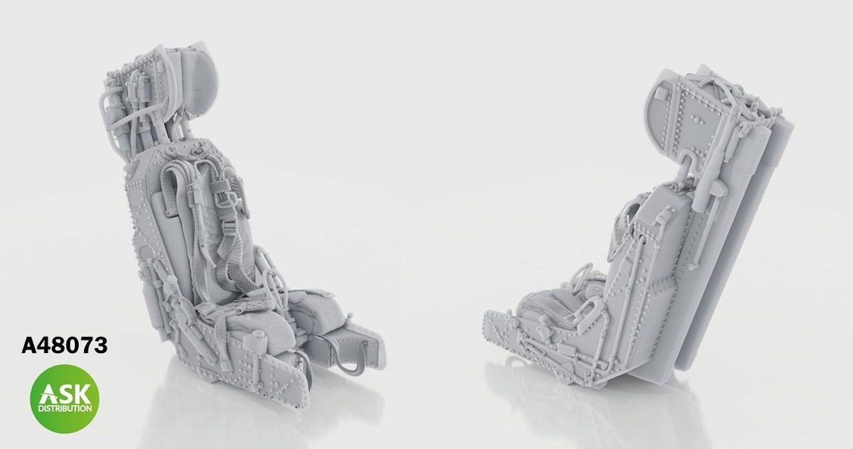 Art Scale Kit (ASK) из Чехии выпускает на 3D-принтере катапультные кресла Martin Baker Mk.9 для моделей Harrier GR.I и GR.3 в масштабе 1/48 от Kinetic: M.B. Mk.9 ejection Seat including seat belts (каталожный номер A48073) M.B. Mk.9 ejection Seat excluding seat belts (A48074)
