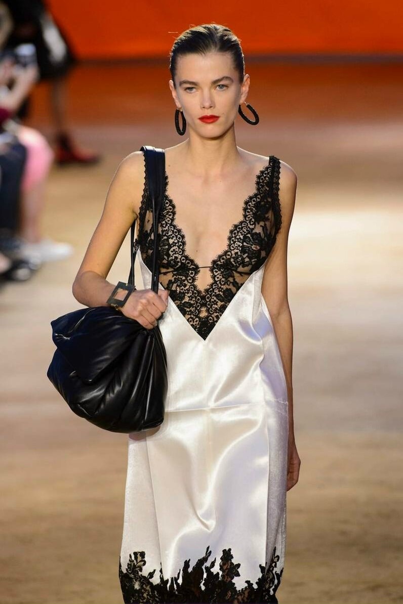 Кружево от Фиби Фило из коллекции Céline возвращается Это было в 2015 году, во время расцвета эпохи Фиби Фило в Céline, когда мы впервые увидели на подиуме ее шелковые платья и топы с кружевной отделкой. В них чувствовалась атмосфера 90-х, но Фиби Фило привнесла в них современные нотки. Выполненные в черно-белых тонах, они сочетались с пальто А-линии, застегнутыми на талии, широкими белыми брюками и утилитарными ботинками Chelsea малинового и черного цветов. Модели выглядели спокойно и уверенно в этих нежных платьях, стилизованных под грубые ботинки - идеальный баланс мужского и женского.