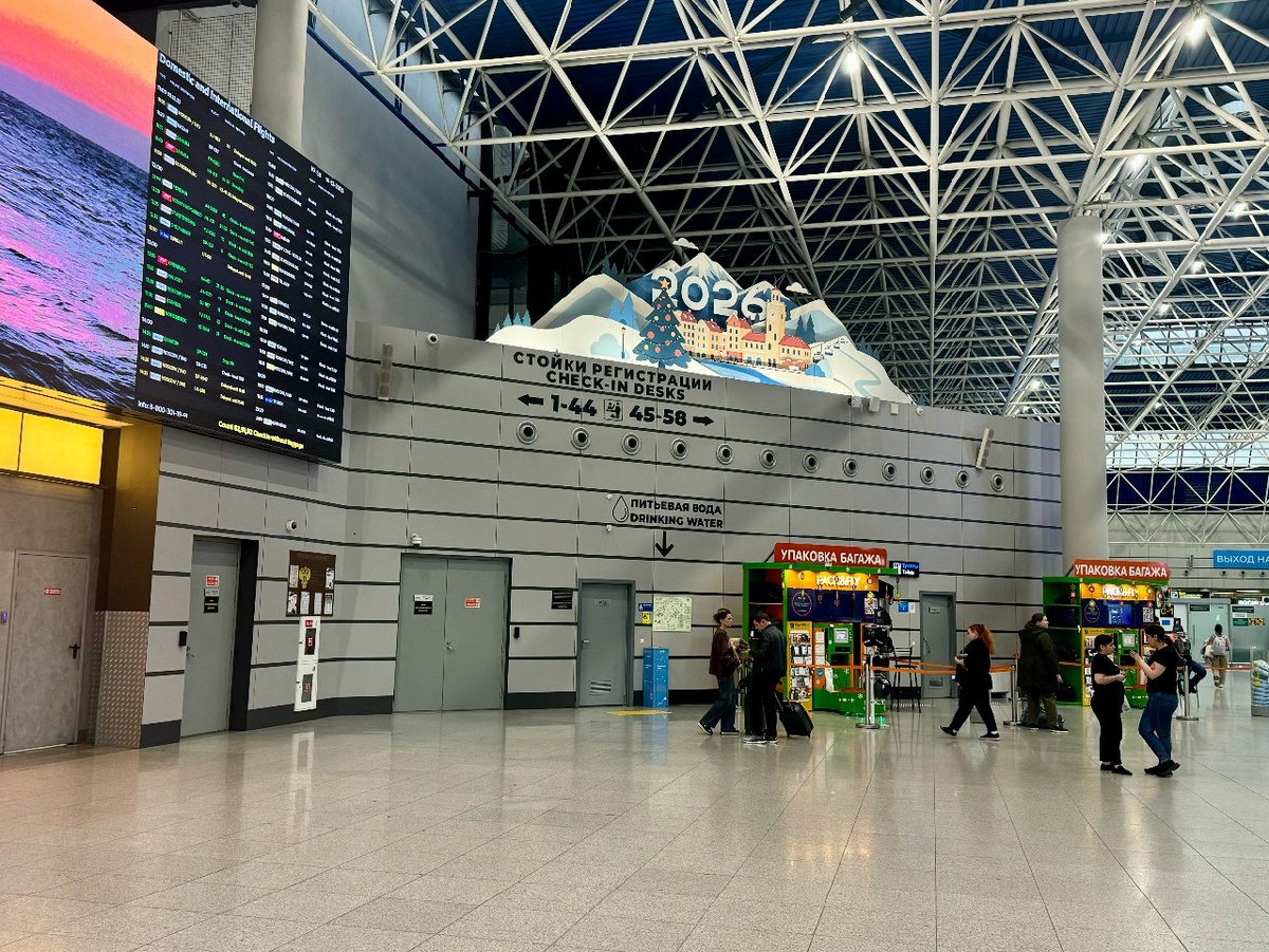 Как в сказке! 😮 В преддверии Нового 2026 года аэропорт Сочи традиционно готовит сюрпризы и создаёт праздничное настроение перед путешествием. На пути следования пассажиров в зону предполётного досмотра (сектор B2) в воздухе «парят» светящиеся подвесные конструкции. Главный герой — Дед Мороз летит на самолёте и везёт новогоднюю ёлку, а звёзды и месяц навевают мысли о новогодних чудесах и исполнении заветных желаний. Свисающие с потолка подарки создают иллюзию полёта. Красота в цифрах: 25 метров — общая протяжённость инсталляции; 100 кг картона — потребовалось для украшения 22 объектов; 65 метров яркой гирлянды с адресным управлением; 15 часов длился монтаж декораций; 9 метров — высота, на которую альпинисты подвешивали фигуры. Не менее красивой локацией стал фотостенд в секторе С2 с изображением достопримечательностей курорта Красная Поляна. Конструкция установлена на высоте 3,2 метра и состоит из шести слоёв, что визуально создаёт объёмную картину, а подсветка добавляет уюта и в