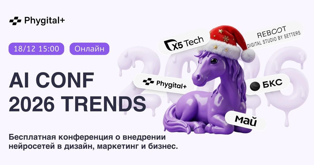 А тем временем у наших друзей из Phygital+ снова грядет кое-что интересное 18 декабря в 15:00 МСК они проведут последнюю в этом году AI CONF 2026 Trends. Будет взгляд на то, как крупные компании будут использовать ИИ для реальных бизнес-задач в 2026 году. Конфа пройдет онлайн и бесплатно. Среди спикеров будут X5Tech, Май Foods, БКС, Reboot (by Setters), а также секретный амбассадор нейросетей (раскроют все карты ближе к делу!) Спикеры поделятся своими кейсами внедрения ИИ, итогами 2025 года, результатами, цифрами и сложностями. Обещают новогодние подарки и много полезной информации про кратное ускорение бизнес-процессов, оптимизацию ресурсов и новые подходы к работе с графикой и дизайном 🎄 Регистрация.