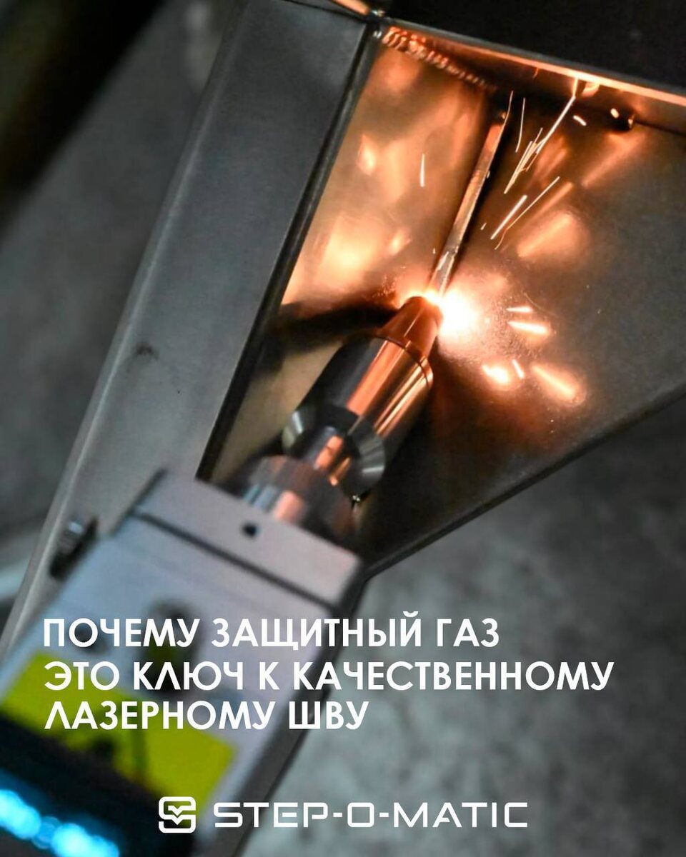 При лазерной сварке защитный газ играет ключевую роль, он влияет на формирование, качество, глубину и ширину сварного шва. 🔽 Положительное влияние защитного газа 1️⃣ Защита от окисления Корректная подача газа предотвращает контакт расплавленного металла с кислородом, снижает риск окисления и улучшает внешний вид шва. 2️⃣ Снижение брызг и защита оптики Правильно настроенный поток газа уменьшает количество брызг в процессе сварки — это не только повышает качество шва, но и защищает фокусирующую оптику лазера. 3️⃣ Формирование ровного и красивого шва Газ способствует равномерному распределению сварочной ванны при кристаллизации, что делает шов более стабильным и эстетичным. 4️⃣ Повышение эффективности лазера Правильная продувка уменьшает образование паров металла и плазменного облака, которые могут экранировать излучение. В результате больше энергии достигает поверхности заготовки, а эффективность сварки возрастает. 5️⃣ Снижение пористости Оптимальный режим подачи газа уменьшает образов