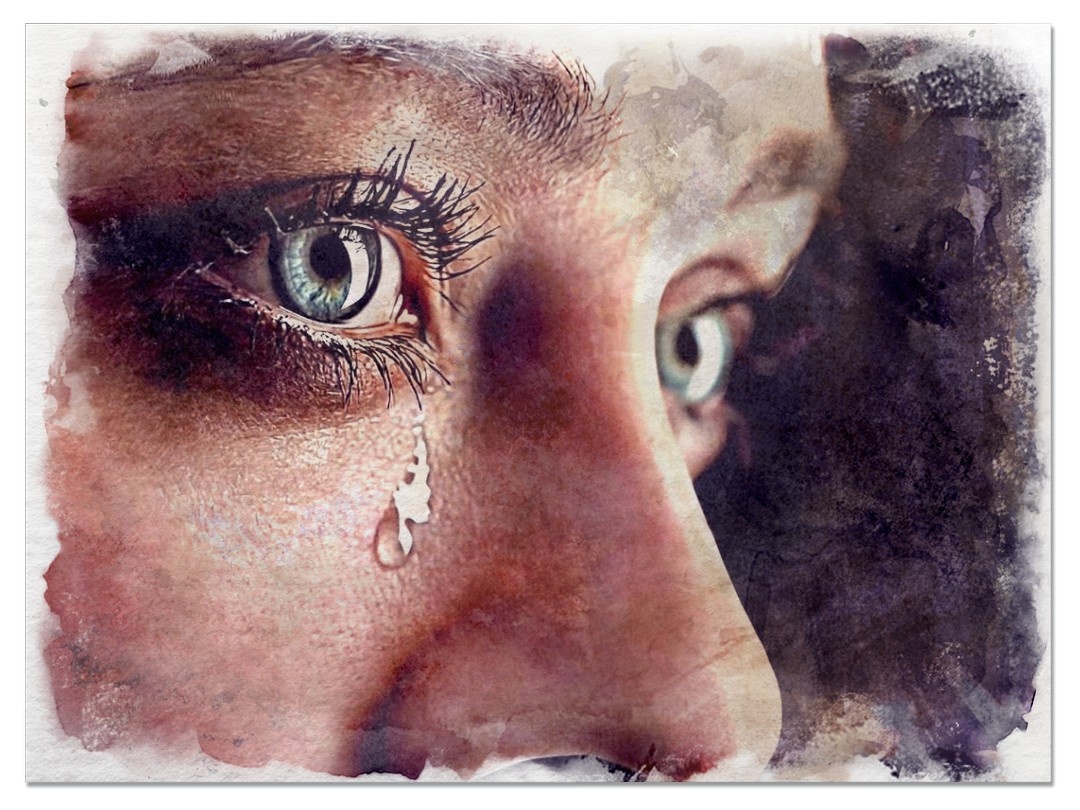 Алексей подошёл и остановился перед ней. Она подняла голову. Лицо было опухшим от слёз, губы дрожали.