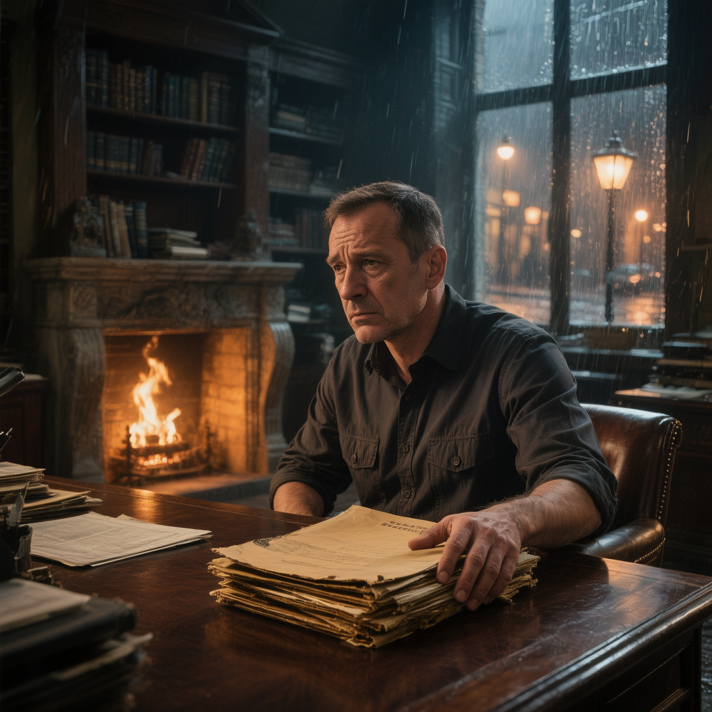 Дождь стучал по стеклу частного кабинета на старой петербургской улице, будто просился внутрь — разделить одиночество человека, сидевшего у огня. Александр Воронов, детектив, чьё имя ещё недавно мелькало в газетных хрониках, теперь знал цену тишине. Она была тяжёлой, звонкой и дорогой. Он перебирал папки с закрытыми делами, не читая, просто чувствуя под пальцами шершавую бумагу — материальное доказательство того, что в его жизни был порядок.