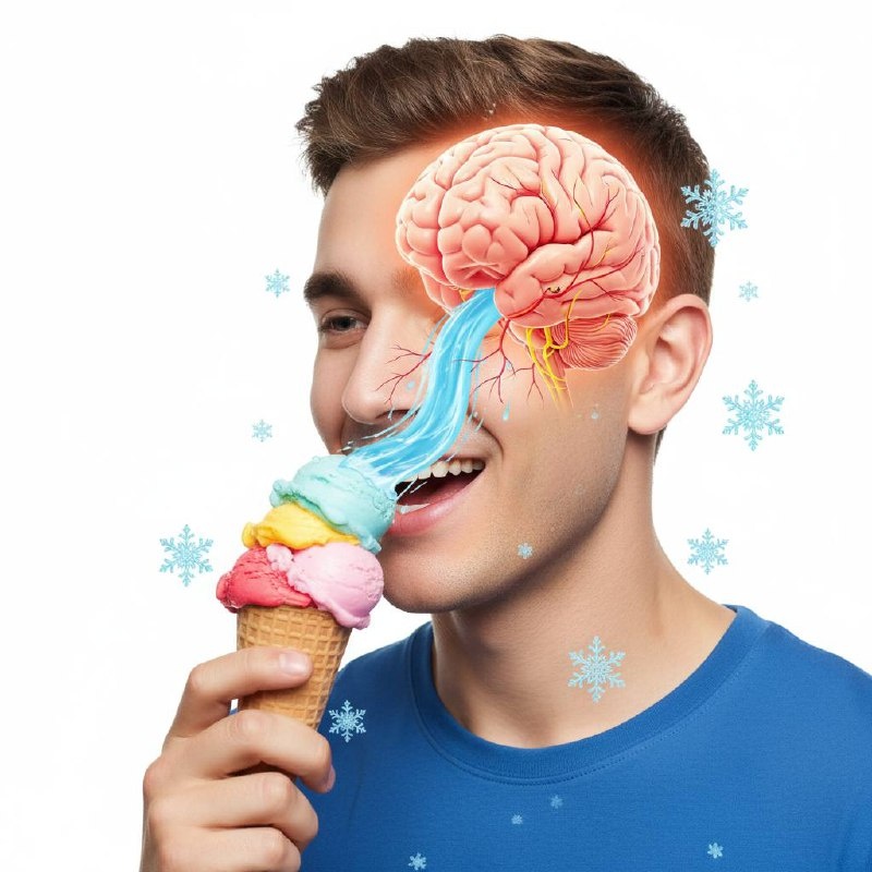 ▎✅ ПРАВИЛЬНЫЕ ОТВЕТЫ: Вариант Б — главный механизм! Вариант Г — тоже верен! Вариант В — частично описывает процесс! ▎📚 Научное объяснение: Это явление называется "сфенопалативная ганглионевралгия" или просто заморозка мозга🧊. Когда холодное мороженое касается нёба, происходит: 1. Резкое охлаждение кровеносных сосудов в задней части нёба 2. Рефлекторное сужение, а затем быстрое расширение сосудов головного мозга (особенно передней мозговой артерии) 3. Тройничный нерв (один из самых крупных черепных нервов) передаёт болевые сигналы в лобную область Мозг получает сигналы от холодовых рецепторов во рту, но "проецирует" боль на область лба — это называется отражённой болью.
