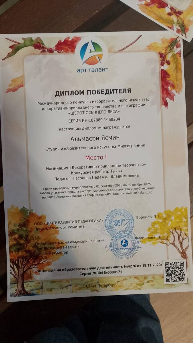 🎉 Друзья, сегодня вместо медицинских кейсов – маленький семейный триумф 😊 🎨 Моя Ясмина взяла первое место на конкурсе декоративного искусства. Её яркая «Тыква» покорила жюри и ещё раз доказала: пища питает не только желудок, но и фантазию. У меня эндорфины зашкаливают, как после идеальной колоноскопии без боли 😉 🥰 Горжусь дочкой до мурашек и желаю всем таких же тёплых побед – они полезнее любого пробиотика. Обнимаю!