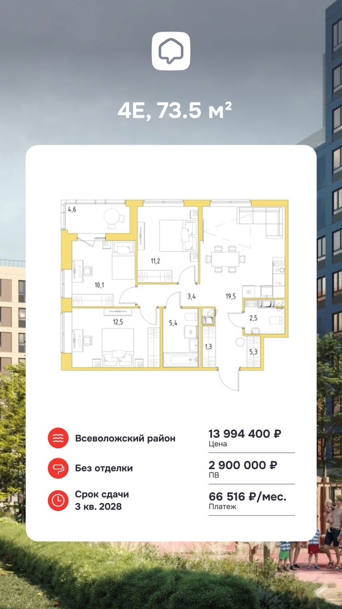 Квартира недели от ЛенСтройТрест 4 ккв (Евро), 73.5 м² в ЖК «Янила Форест» • 73,5 м² комфорта: продуманная планировка с просторной кухней-гостиной — центром семейной жизни. • Удобные места для хранения: всё на своих местах без лишнего визуального шума. • Новогодние скидки — самое удачное время, чтобы подобрать семейную квартиру по выгодной цене. Расчет по семейной ипотеке со ставкой 6% • цена — 13 994 400 ₽ • ПВ — 2 900 000 ₽ • ставка — 6% • платеж — 66 516 ₽/мес. Новости @Saloff Realty