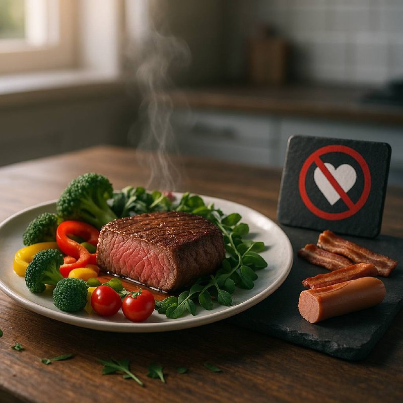 🔥Колбаса… или кардиолог?🔥 Красное мясо под прицелом гастроэнтеролога! Что такое красное и переработанное мясо • Красное мясо – говядина, свинина, баранина, телятина, козлятина. Цвет обусловлен миоглобином. • Переработанное – мясо, изменённое солением, копчением, сушкой, ферментацией или добавлением нитрита: колбасы, сосиски, бекон, ветчина, сервелат, пастрами и т. д. Чем эти продукты могут быть полезны 1. Полноценный белок – все незаменимые аминокислоты для мышц и иммунитета. 2. Гемовое железо и витамин B12 – профилактика анемии, поддержка когнитивных функций. 3. Цинк, селен, карнозин, креатин – рост и восстановление тканей, антиоксидантная защита, энергетический обмен. 4. Чувство длительного насыщения – снижает тягу к перекусам у людей с лишним весом. Чем грозят излишества 1. Канцерогены: – Переработанное мясо (колбасы, бекон) внесено ВОЗ в «Группу 1» – доказанный канцероген; каждые 50 г в день ↑ риск рака толстой кишки на ~18 %. – Красное мясо – «Группа 2А» (вероятный канцерог