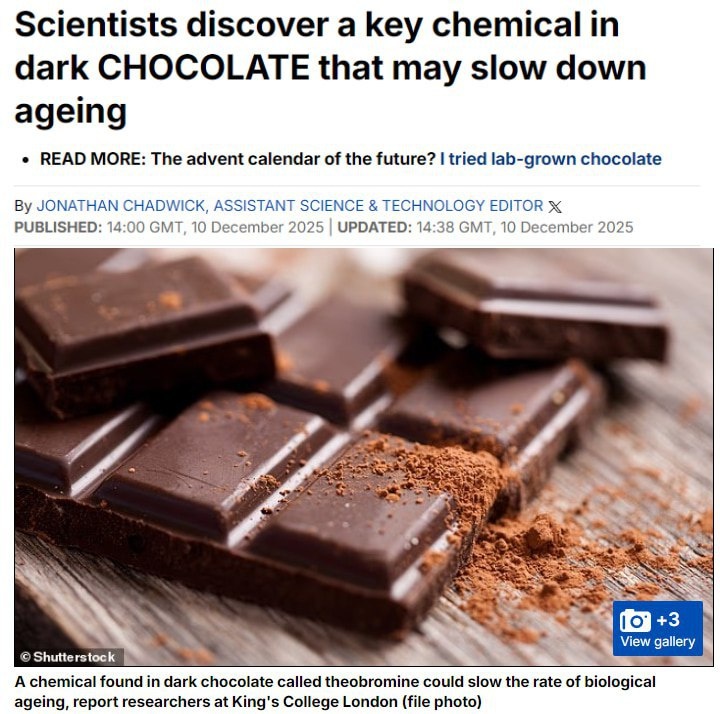 Шоколад замедляет СТАРЕНИЕ — это реально не просто вкусняшка. Всё благодаря теобромину. У тех, у кого в крови был высокий уровень теобромина, имелись более «молодые» клетки. Это измеряли по длине теломер и показателям эпигенетики. Результат: организм с «шоколадной» химией стареет медленнее. От вкусняшки бустится ВСЁ — здоровое сердце, улучшенная циркуляция и потенциальная защита мозга. Сладкоежки, отмечаем. CtrlAltDelights- подписаться