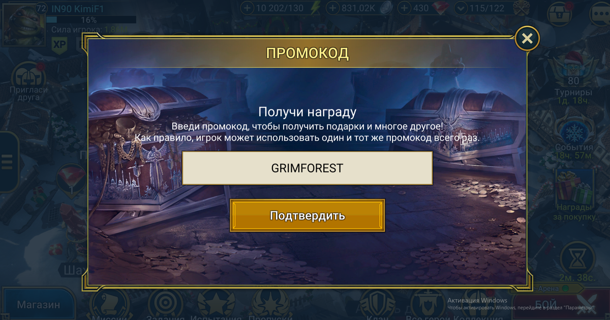 Всем привет!!! В Raid Shadow Legends вышел новый режим " Мрачный Лес". В связи с этим событием ловите промокод. Успевайте его ввести!!! Всем хорошей игры!!!