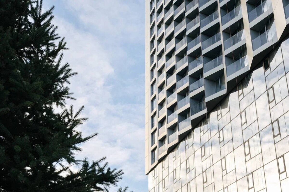 В районе Щукино продолжается строительство жилого комплекса — в первом корпусе завершено устройство фасада. Ход работ проконтролировали инспекторы Мосгосстройнадзора во время очередной выездной проверки. Об этом сообщил председатель Комитета Антон Слободчиков. Проект реализуется на северо-западе Москвы в 3-м Красногорском проезде. «Дом на 330 квартир визуально разделен на несколько частей. С первого по шестой этаж облицовка выполнена с помощью технологии структурного остекления, что создает эффект зеркального основания. Выше располагаются панорамные окна с чередой угловых эркеров, которые придают динамическую пластику и невесомую структуру. Здесь стеклянные поверхности в совокупности с серебряно-золотыми металлическими кассетами подчеркивают современный облик здания. Всего было установлено порядка 6,5 тысячи квадратных метров оконных систем и около семи тысяч металлических элементов», — отметил Антон Слободчиков. Для монтажа фасадов применяется сертифицированная фасадная система, сос