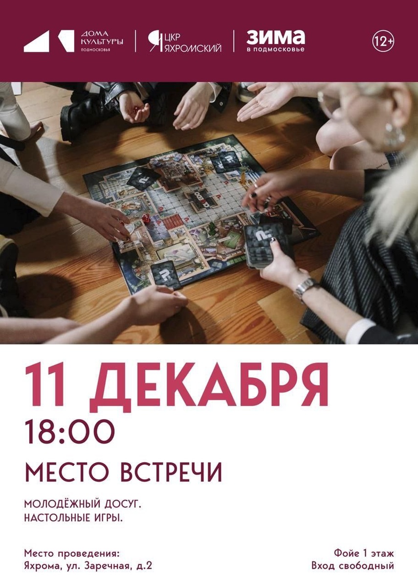 🔥ЗАВТРА🔥 🎉Приглашаем вас на яркий и увлекательный молодёжный досуг «Место встречи»!🎉 🎈Здесь вас ждут настольные игры, живые беседы, творческие активности и, конечно, отличная компания. Это прекрасный способ весело провести время с друзьями, прокачать навыки общения и просто отлично отдохнуть! ⬇️Присоединяйтесь — будет интересно и весело! 📅 11 декабря ⏰ 18:00 ✨Категория 12+ 🔐Вход свободный 📍ЦКР «Яхромский», фойе 1 этажа г. Яхрома, ул. Заречная, д. 2