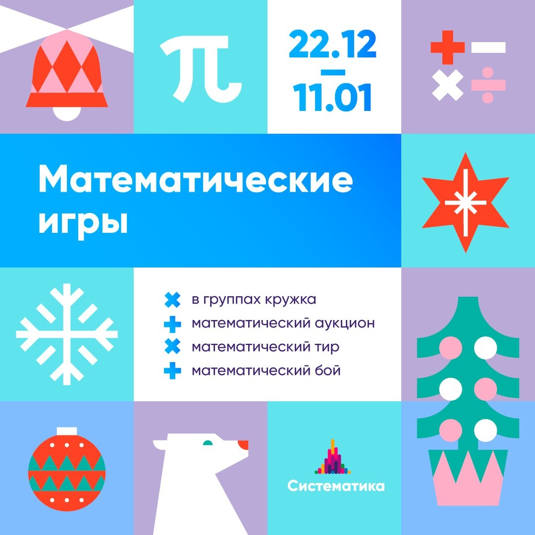 Что такое математические игры? Математические игры — это отличная тренировка в соревновательном контексте. Матигры помогают подготовиться к участию в серьезных олимпиадах! Такие игры учат думать быстро, отстаивать свое мнение и объяснять ход решения. Математические игры — важная часть образовательного процесса Систематики. ⏺️Матигры — один из главных этапов закрепления знаний: когда ученики учатся объяснять решение другим, они присваивают знания себе и обретают уверенность ⏺️Дети пробуют свои силы в командной игре ⏺️Учатся презентовать свою точку зрения, понятно и подробно объяснять решение ⏺️ А ещё это весело, увлекательно и очень азартно! С 22 декабря во всех группах кружка по олимпиадной математике мы будем играть в математические игры! Всего будет 3 формата игр: ✏️математический аукцион — это соревнование команд, в каждой есть капитан. В начале аукциона каждая команда получает кредит. Игра состоит из нескольких лотов. В каждом лоте ведущим аукциона выставляется на торги одна