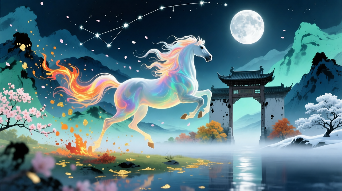 Небесный Конь (Тяньма): В китайской мифологии — божественное существо, способное передвигаться по небу без крыльев, оставляя за собой сияющий след. Символ невероятной скорости, удачи и трансцендентности.