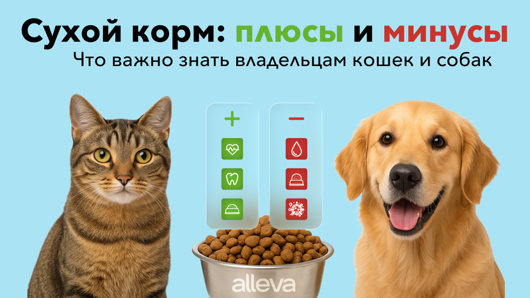 Сухой корм — это удобно, практично и сбалансированно. У него есть как сильные стороны, так и ограничения, поэтому важно внимательно выбирать марку и контролировать рацион. Если подобрать качественный продукт, например Alleva, можно обеспечить питомцу полноценное питание и сохранить его здоровье на долгие годы.