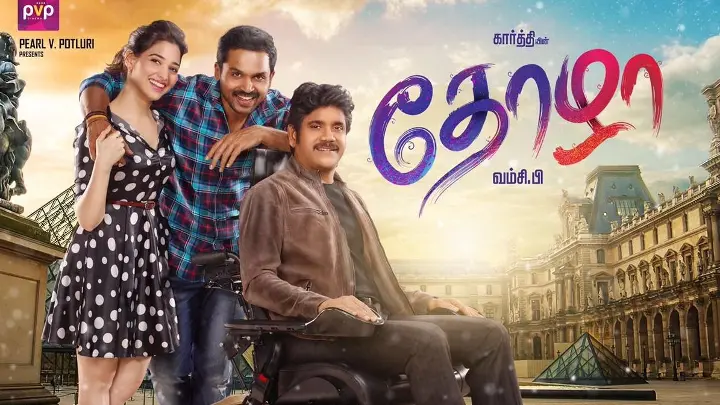 Давай, Сину!… Жми на газ, Сину!… Я хочу летать, Сину!!!… Этот фильм о победе духа над телом и победе человечности и сострадания над равнодушием и мелочностью. Удивительное кино. Я давно видела оригинал, если его можно так назвать, но по ощущениям этот фильм не чуть не хуже. В чем-то даже на порядок выше. Карти ни в чем не уступает Омару Си. Это его последний озвученный фильм в фильмографии, больше никто даже не удосуживается заморочиться, куча фильмов остаются с сабами. Жаль. Буду ждать. Я терпеливая. Карти, конечно, дикий и необузданный, на вид постоянно свиреп (и я, полагаю, вонюч), короче, настоящий тамильский мужик. Но актер стоящий. Как и Нагарджуна, который играет парализованного миллиардера Викрама, которому в жизни настал карачун после того, как он упал с параплана (или дельтаплана, или как там его). Сину (Карти) пошел к нему в сиделки, так как того требовали правила об УО (условно досрочном) — пойти заняться общественной работой, так сказать, на благо общества. Ну чем сиделк