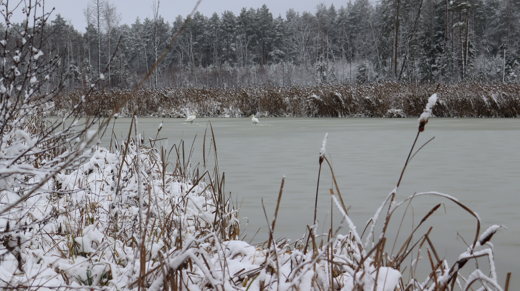 В заповеднике «Брянский лес» наступила настоящая зима, и белые лебеди постепенно привыкают к снегу и льду. Орнитологи отмечают, что птицы могут не улетать, если в пруду будет достаточно корма и вода останется незамерзшей. В Брянском лесу выпал первый настоящий снег, и это заметили даже птицы. По информации, опубликованной на странице заповедника во «ВКонтакте», зима пришла, и она заметно оживила лесные пейзажи. Сотрудники заповедника отметили, что снег выглядит красиво, несмотря на возможные трудности на дорогах, а холодная погода внесла разнообразие после затянувшегося ноября. Орнитологи наблюдают за лебедями: пока они осторожно стоят на льду, приводя в порядок пух и перья. По словам орнитолога Евгении Кайгородовой, птицы могут и не улететь, если в пруду будет достаточно корма и незамерзающая полынья. Ранее мы сообщали, что сильный снегопад накрыл Брянск и принёс новогоднее настроение. Пара лебедей осталась в заповеднике «Брянский лес» на зиму
