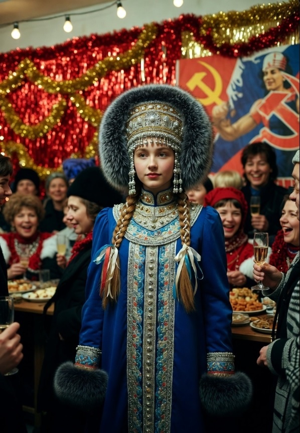В сценариях 1930-х Снегурочка часто выступала ведущей: читала стихи, задавала детям вопросы о Ленине и Сталине, помогала раздавать подарки. Её образ был максимально «правильным»: пионерский галстук под шубкой, косы, активная общественная позиция.