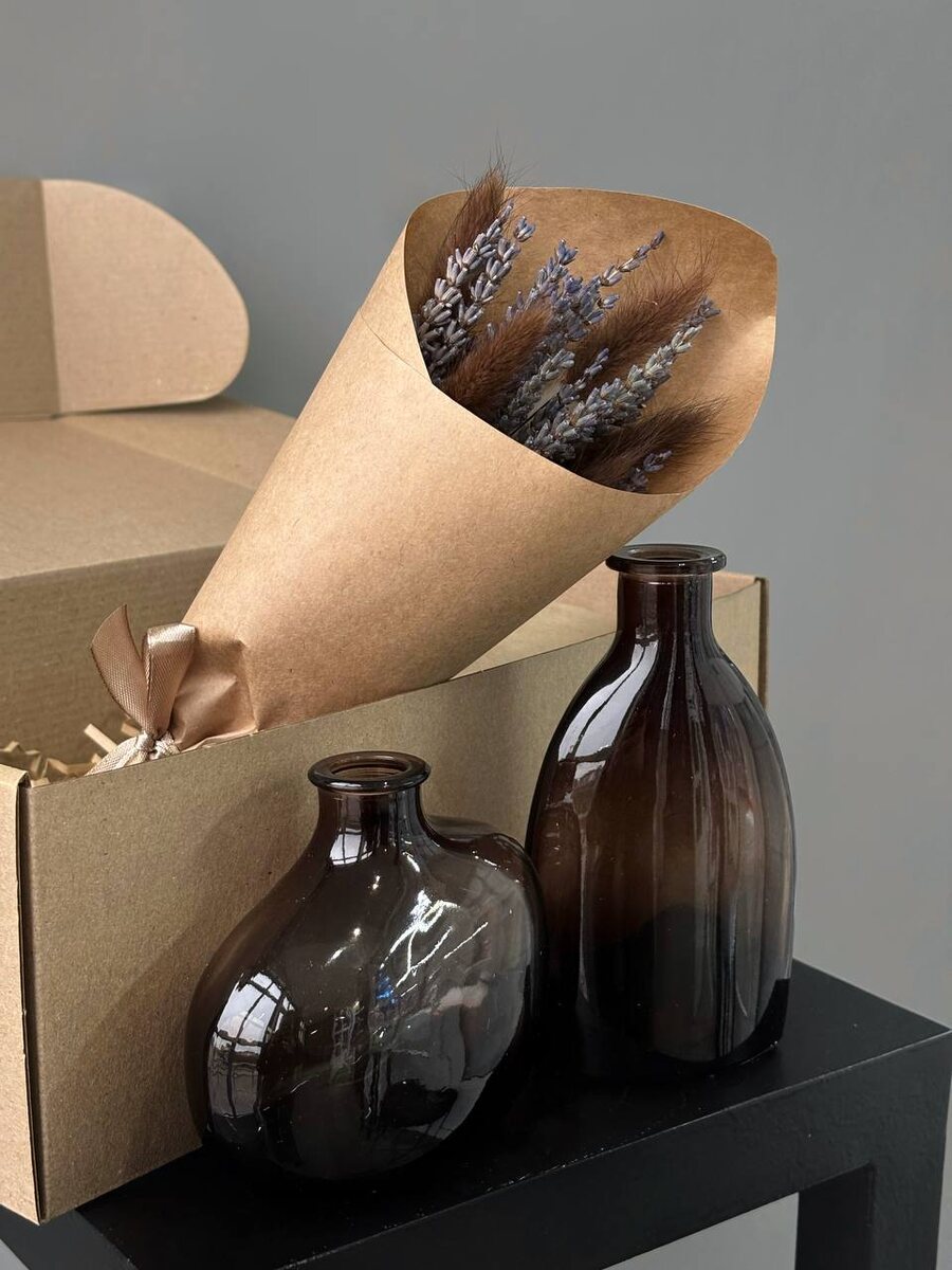 Представляем новинку — изящный подарочный бокс, в котором вы найдёте две стильные вазы и два мини-букета лаванды. Ненавязчивый природный аромат создаст дома особую атмосферу уюта и спокойствия.