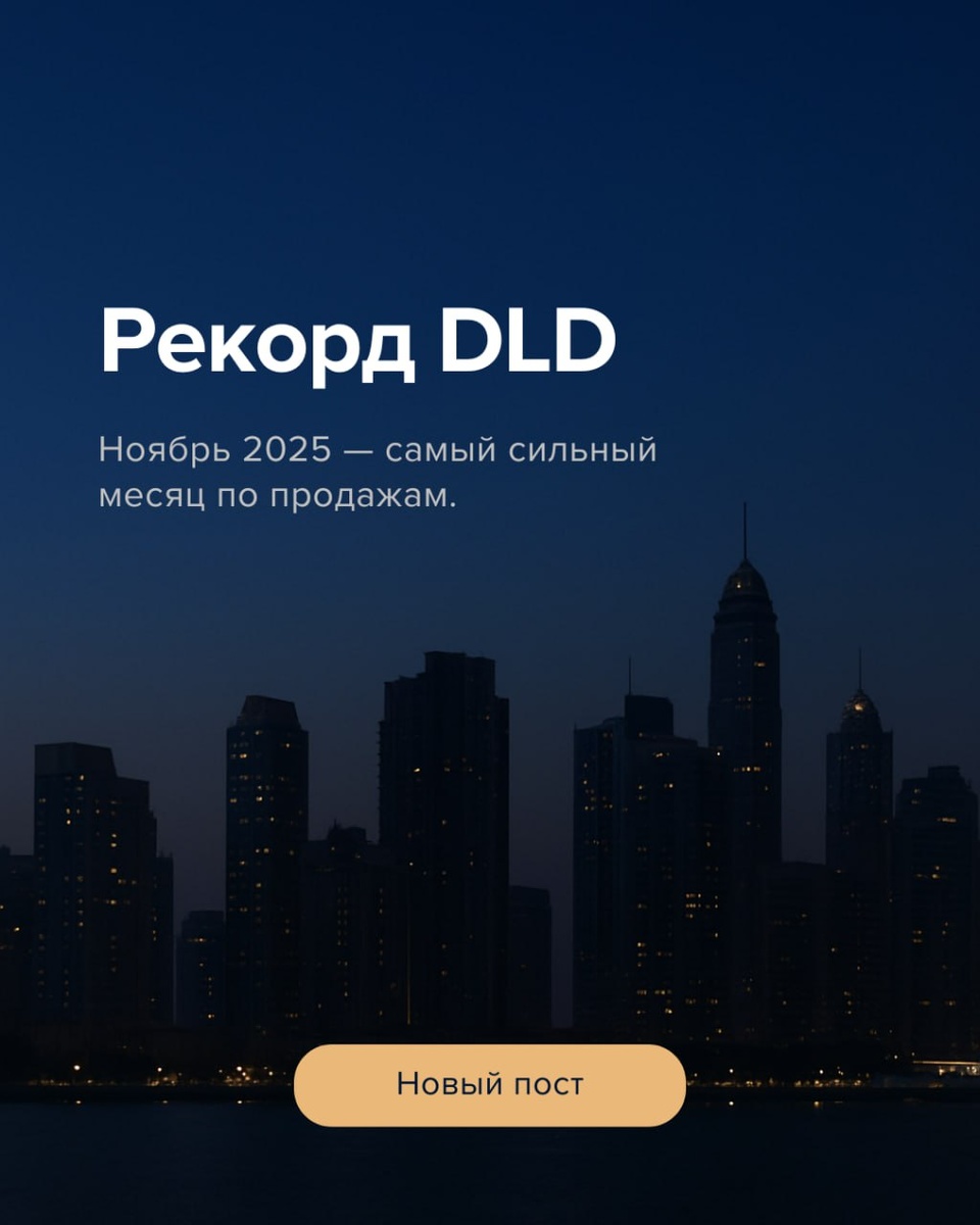 🇦🇪🇦🇪🇦🇪🇦🇪 DLD зафиксировал рекордный объём сделок в ноябре 2025🔥 Dubai Land Department опубликовал данные, по которым ноябрь стал самым активным месяцем за всю историю рынка: около 19 000 сделок на сумму 64.7 млрд дирхам, что почти на 50% выше прошлого года. За 11 месяцев объём продаж уже превысил 624 млрд, обгоняя весь результат 2024. Для рынка это означает одно: активность смещается в новую норму. Спрос идёт сразу по нескольким направлениям: от апартаментов и вилл до коммерции, — и это не всплеск, а устойчивый тренд на фоне стабильной экономики, миграции и роста интереса к Дубаю как к финансовому и lifestyle-хабу. Но важно понимать: рекордные цифры это фон, а не индикатор того, что все проекты дают одинаковый результат. Рост не распределён равномерно: сильные районы и качественные комплексы тянут рынок, в то время как средние проекты и слабые девелоперы этого роста не ощущают. Итог простой: Объем сделок показывает уверенность покупателей, но инвестору по-прежнему важно с