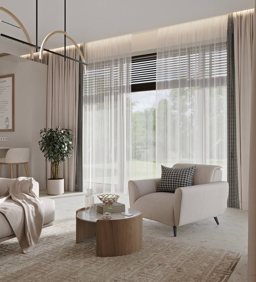 После того как мы повесили шторы на объекте, интерьер будто стал глубже, мягче, собраннее, живее