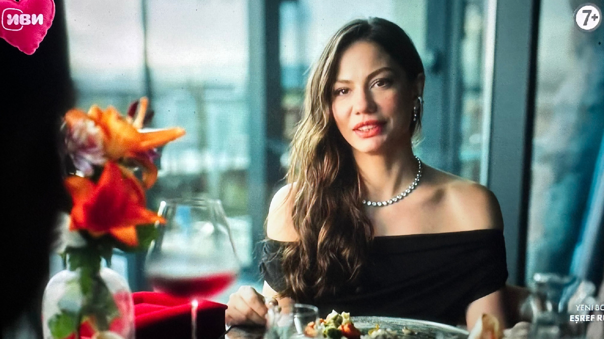 Эшреф и Нисан ужинают в новом доме. Девушке приходит сообщение, но она прячет телефон.