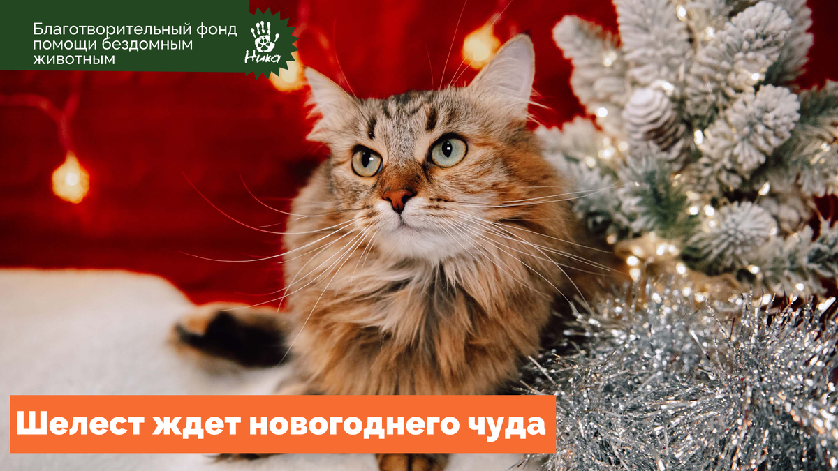 Шелест — ласковая молодая кошечка, которая любит и тянется к людям. На судьбу нежной и доверчивой кошки выпало тяжелое испытание, повлиявшее на дальнейшую жизнь. Как и многие подопечные фонда она начала свою жизнь на улице. Долгое время тогда еще безымянная кошка выживала на территории склада организации, где сотрудники разделились на два лагеря: одни оплачивали стерилизацию и помощь для местных кошек, а другие просто игнорировали их. Когда ее сбила машина, на кошачью беду никто не обратил внимание. Кошка оказалась никому ненужной, вынужденная подтягивать себя на передних лапах, передвигаясь по холодному бетону склада, по улицам и подвалам в поисках еды и укрытия. Только спустя неделю неравнодушные люди, заметив бедственное состояние покалеченной и истощенной кошки, позвонили в Фонд «Ника». Травмы, полученные Шелест, привели к осложнени