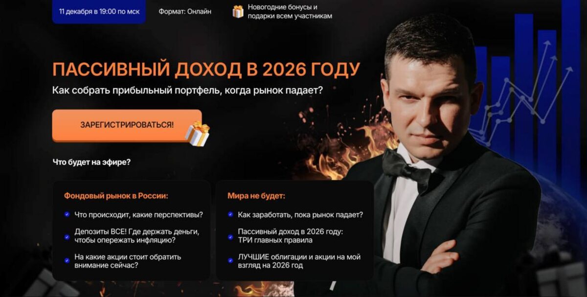 Если вы дочитали до этого места — самое время перейти от теории к действию 🙌 Мы не можем контролировать рынок. Мы не можем знать, что будет через год. Но мы можем подготовиться. Именно для этого я и провожу эфир уже в этот четверг, 11 декабря, в 19:00 по МСК. ✅ Как собирать портфель, когда рынок падает? ✅ Какие инструменты дадут пассивный доход в 2026 году? ✅ Что делать со ставкой, долларом, недвижимостью и остальными переменными? ✅ И почему я впервые за 4 года зашел в сделку по недвижимости? Мы честно разберем вероятности разных сценариев, обсудим риск-менеджмент, стратегию и то, как сохранить и приумножить капитал в условиях неопределенности. Если вы хотите услышать это первым — просто зарегистрируйтесь заранее. Это бесплатно, но места ограничены. 👉 Ссылка на регистрацию: https://lp.prosto-invest.com/incomedecember Увидимся в четверг в 19:00 по МСК. Будет максимально практично и спокойно — без шума, без паники, только реальные стратегии.